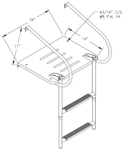 This heavy-duty boat ladder would be perfect for your boat or deck. This ladder mounts on top of your platform for ease of stowage. Requires a minimal amount of depth fore and aft for mounting. It is made from stainless steel for very low maintenance. Pick one up today while they're still available! Because of the large and varying number of boats and docks this ladder will fit we do not include mounting instructions or mounting hardware.
