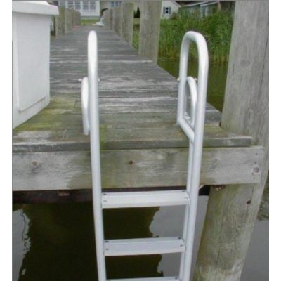 A very popular pier or boat dock swim ladder. Constructed of extra heavy-duty 1.5" round anodized aluminum with comfortable "non slip" steps . The 3-Step Ladder mounts with easy to install stainless steel mounting kit. Ladder comes complete with all heavy-duty mounting hardware and easy to assemble instructions. Total length 54 inches. Length from deck to bottom step 34.5". Width 16 inches.