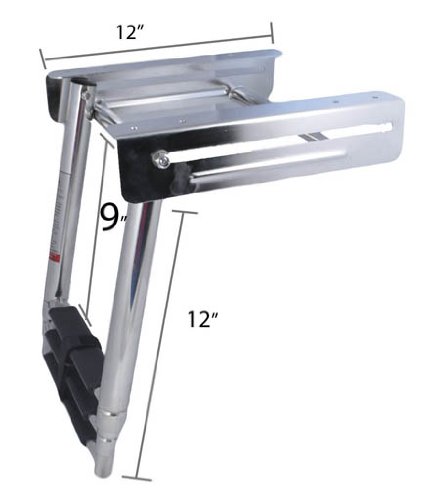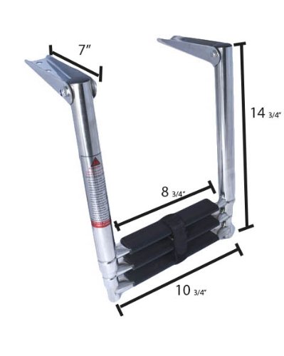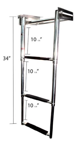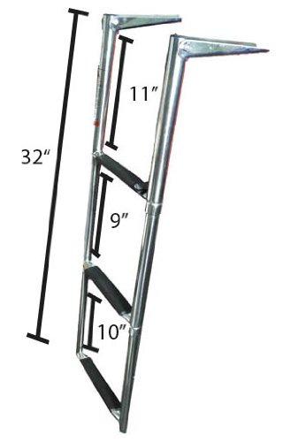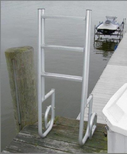 A very popular pier or boat dock swim ladder. Constructed of extra heavy-duty 1.5" round anodized aluminum with comfortable "non slip" steps . The 4-Step Ladder mounts with easy to install stainless steel mounting kit. Ladder comes complete with all heavy-duty mounting hardware and easy to assemble instructions. Total length 64.5 inches. Length from deck to bottom step 46". Width 16 inches.